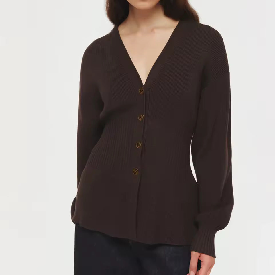 Icondet – Women’s V-Neck Button-Down Cardigan – Dark Brown